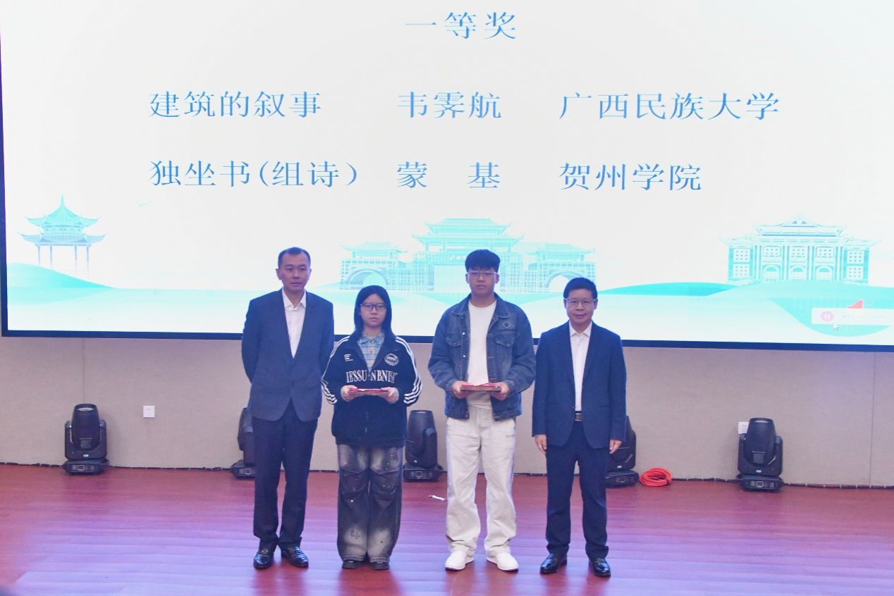 一等奖获奖者韦霁航、蒙基分别分享获奖感言。韦霁航表示,获奖作品灵感源于17岁时所见工地焊工火花,历经散文、诗歌尝试后终寻得专属“普通语言”,将以奖项为励,坚守纯粹写作初心。蒙基表示,自己创作之路始于老师的鼓励,从朋友圈的随笔到正式投稿,每一次肯定都坚定了其文学信念,将继续扎根生活与故乡,用诗歌传递真挚情感。