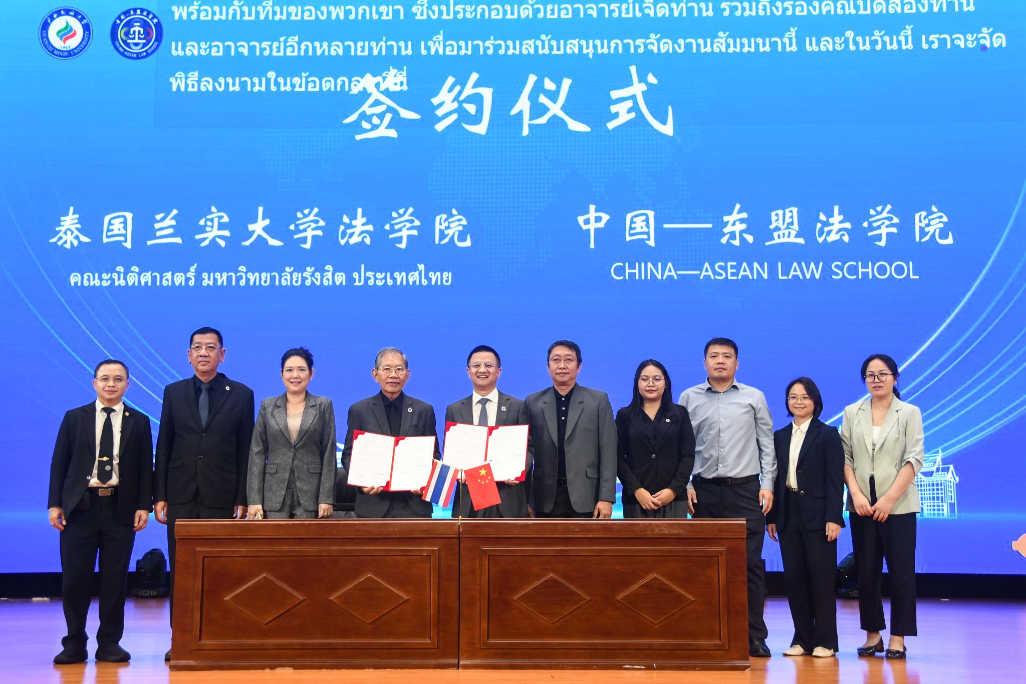 开幕式上,首届涉外法律服务项目大赛启动仪式、东盟法律系列新书成果发布会、中国-东盟法律人工智能成果发布会、中国-东盟法学院与泰国兰实大学法学院签约仪式举行。