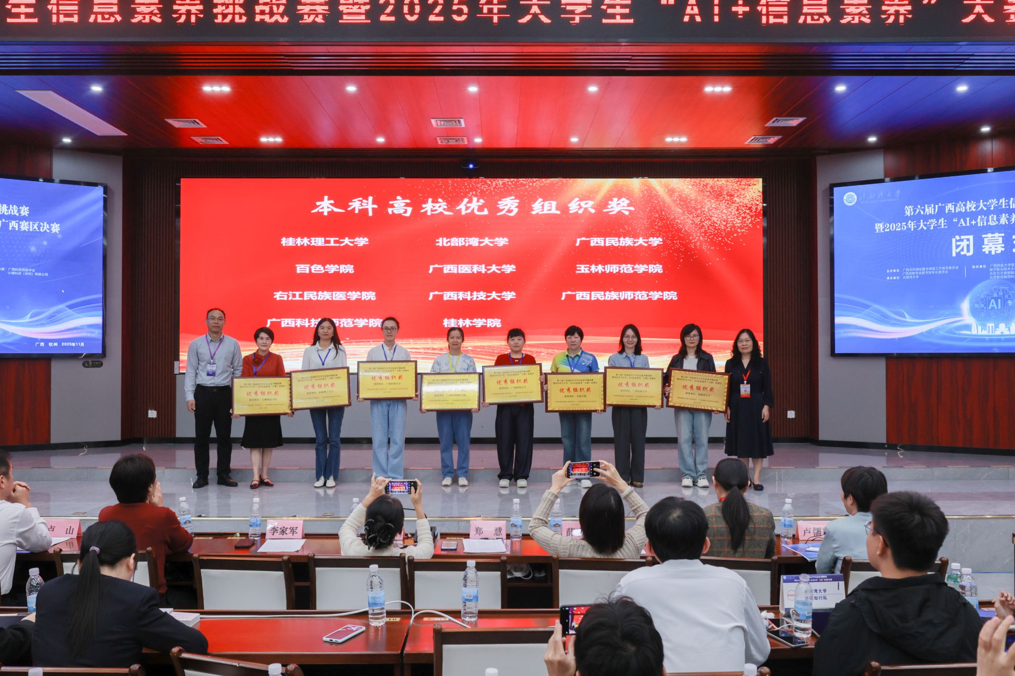 11月8日至9日,第六届广西高校大学生信息素养挑战赛暨2025年大学生“AI+信息素养”大赛广西赛区决赛在北部湾大学举行。澳门网投官方网站学子表现优异,再创佳绩:传媒学院王新颜、王思尹、黎烨组成的“专业团队”获本科生组二等奖;管理学院欧文婕、李舒琪、王庆林组成的“舒庆婕盟”队获研究生组二等奖;李格选、马辛辛、王璐瑶组成的“怎么都”队获得研究生组三等奖。学校荣获本科高校“优秀组织奖”,覃新清、饶文星、黄瑾一获评“优秀指导老师”。