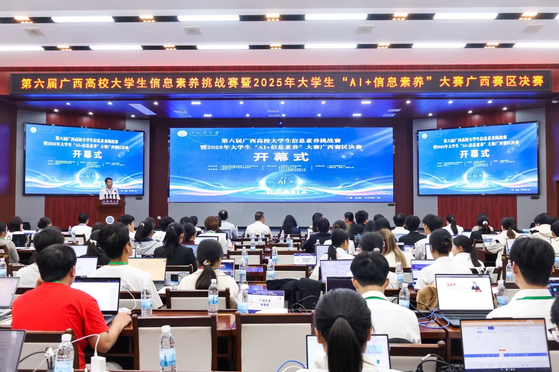 2025年全国大学生“AI+信息素养”大赛自7月启动以来,共吸引全国24个省、自治区、直辖市550所高校的169766名学生报名参赛,赛事规模与影响力持续扩大。作为广西教育厅认定的2025年广西高校大学生学科专业B类竞赛,赛事吸引来自全区30所本科高校、34所高职高专院校的18901名本科生、786名研究生和7844名专科生报名参赛。学校共有1561名本科生和109名研究生踊跃参与。