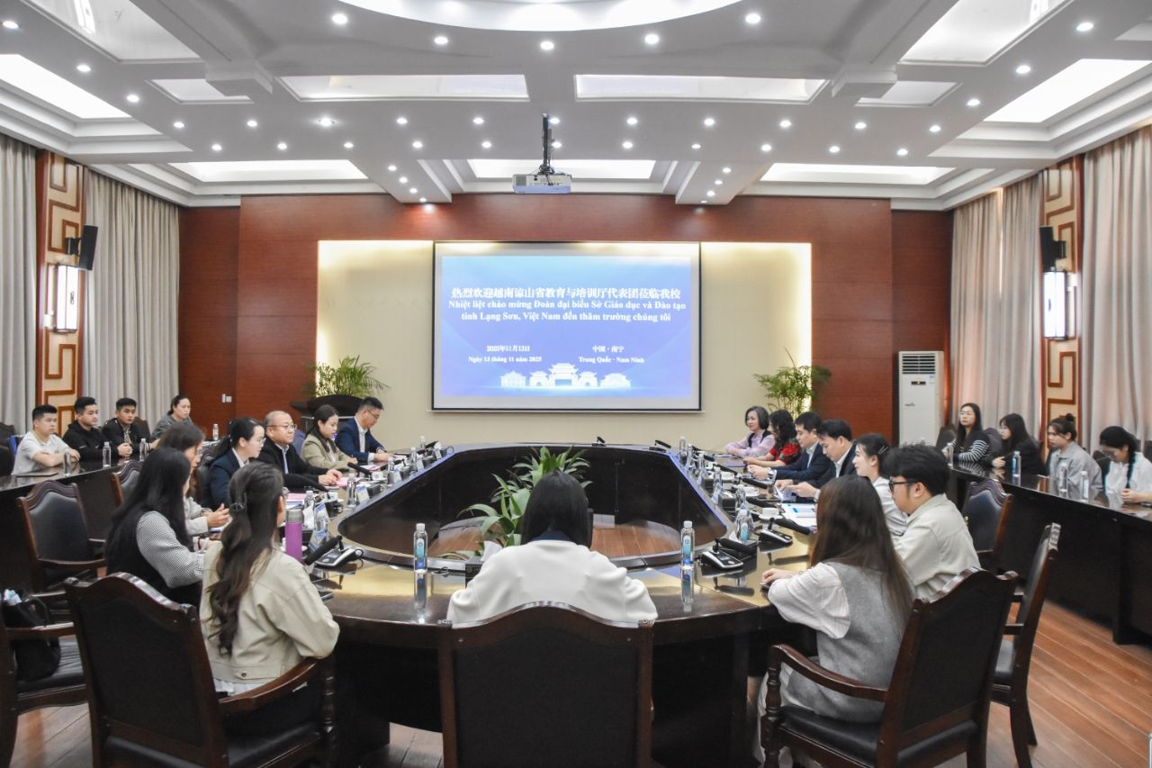 姜明国对越南谅山省教育与培育厅代表团的来访表示欢迎,简要介绍了学校办学发展历史。他表示,今年是中越建交75周年,中越命运共同体建设迎来新的发展契机,澳门网投官方网站重视与越南谅山省有关机构及教育的合作交流,期待双方充分发挥各自优势,深化拓展合作领域,积极探索教育资源共享与联合培训项目等更广阔的合作空间。