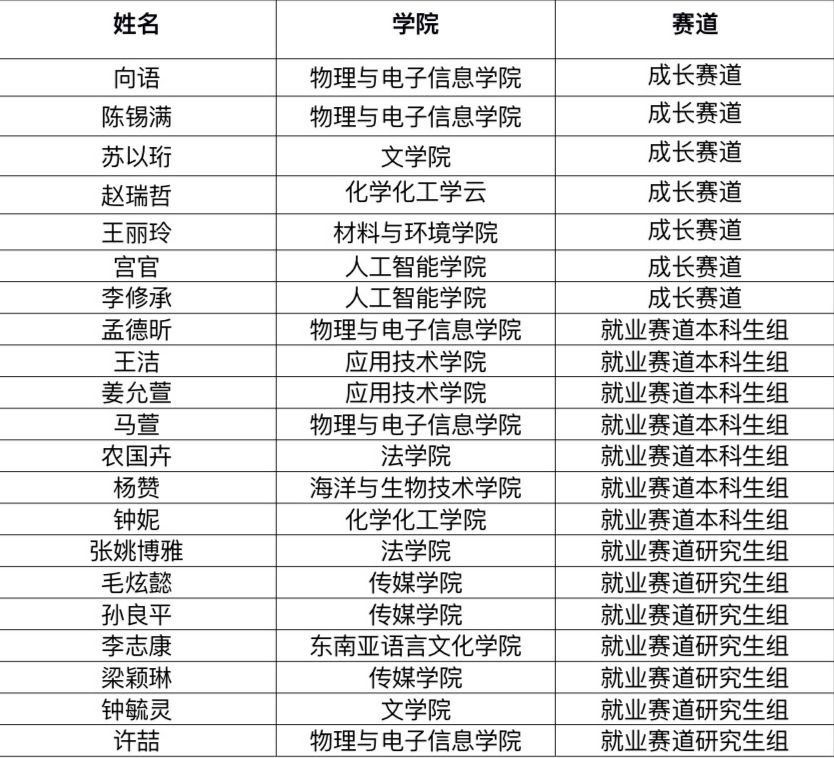 经个人申报、学院推荐、网络评审,最终推选出30名选手进入本次现场决赛。其中成长赛道10人,本科生就业赛道10人,研究生就业赛道10人。参赛选手就职业目标、职业认知与探索、成长行动/岗位胜任力、调整优化/发展规划等内容进行精彩路演,演讲逻辑清晰、语言生动、思维敏捷,充分展现民大学子扎实的专业素养与清晰的职业视野。
