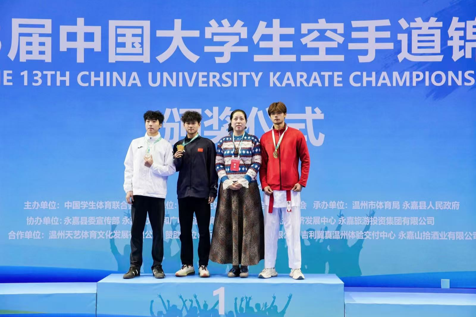 本届赛事由中国学生体育联合会主办,中国学生体育联合会大学空手道分会执行,永嘉县人民政府承办。作为国内大学生空手道领域的顶级赛事,本次比赛共吸引来自全国77所高校的77支运动队、共计510余名运动员同台竞技。在高手云集的丙A组(高水平组)比赛中,学校体育与健康科学学院健儿在各个级别中披荆斩棘:黄泽恩(男子-62kg)、黄意婷(女子-53kg)、苏家洁(女子+61kg)勇夺桂冠;卓敏(男子-68kg)斩获银牌;闭棋桂(男子-71kg)夺得铜牌;覃炳桂(男子-74kg)亦取得第五名的佳绩,共同铸就了这一高光时刻。