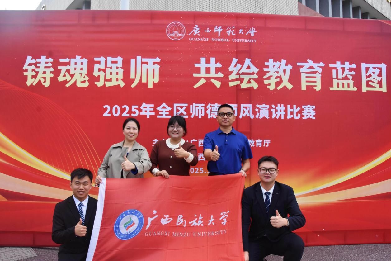 11月9日,由广西壮族自治区教育厅主办的“铸魂强师,共绘教育蓝图”2025年全区师德师风演讲比赛在广西师范大学育才校区圆满落幕。澳门网投官方网站两名参赛选手,文学院2025级汉语言文学专业(师范方向)本科生王昊、民族学与社会学学院2024级历史学专业(师范方向)本科生霍宇轩表现亮眼,分别斩获高校师范生组一等奖和二等奖,刷新学校在该赛事上近五年来的最好成绩。