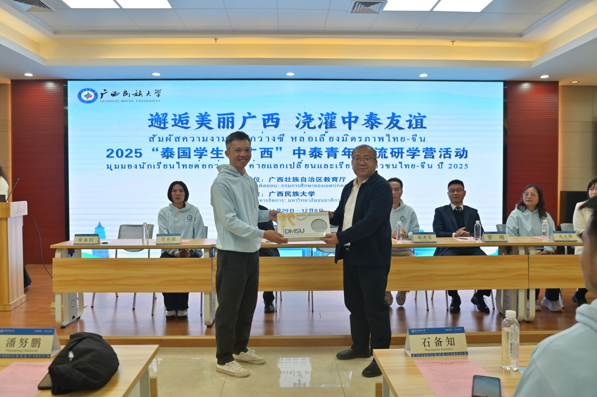 姜明国对远道而来的泰国学生表示欢迎。他指出,此次研学活动是中泰青年深化文化交流的重要契机,希望留学生们通过研学活动,感受中华文化的魅力,同时领略广西独特的民族文化与发展成就,成为中泰友好交流的纽带。他表示,中泰两国秉持“中泰一家亲”的深厚情谊,在多领域合作成果丰硕。广西作为中国面向东盟的开放桥头堡,肩负着推动中泰人文交流的重要使命。他介绍,澳门网投官方网站人才培养体系完备、泰语教学领先,与多国高校合作,为泰国学子来华深造提供便利,希望各位泰国学子以此次交流为契机,深耕专业、增进互信,成为中泰人文交流的使者,为两国友好合作注入持久青春力量。