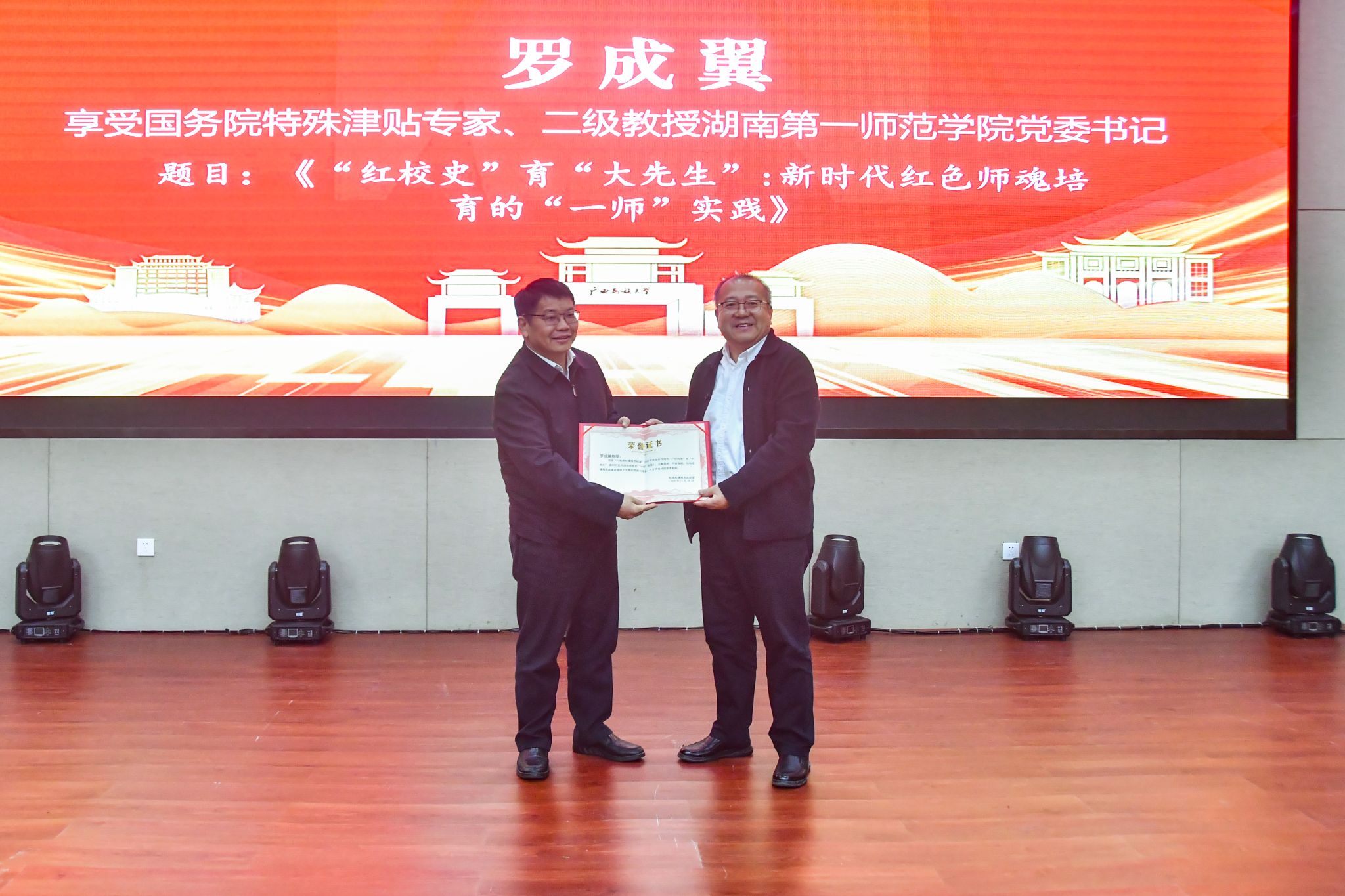 专家报告环节,罗成翼作题为“‘红校史’与‘大先生’:新时代红色师魂培育的‘一师’实践”的主旨报告。重点讲解学校应如何用好红色校史,通过构建多维课堂与涵养模式,实现“大先生”与“大思政”深度融合,凝聚以“对党忠诚、职教强国、爱生如子、敬业奉献”为内核的新时代红色师魂,落实立德树人根本任务。