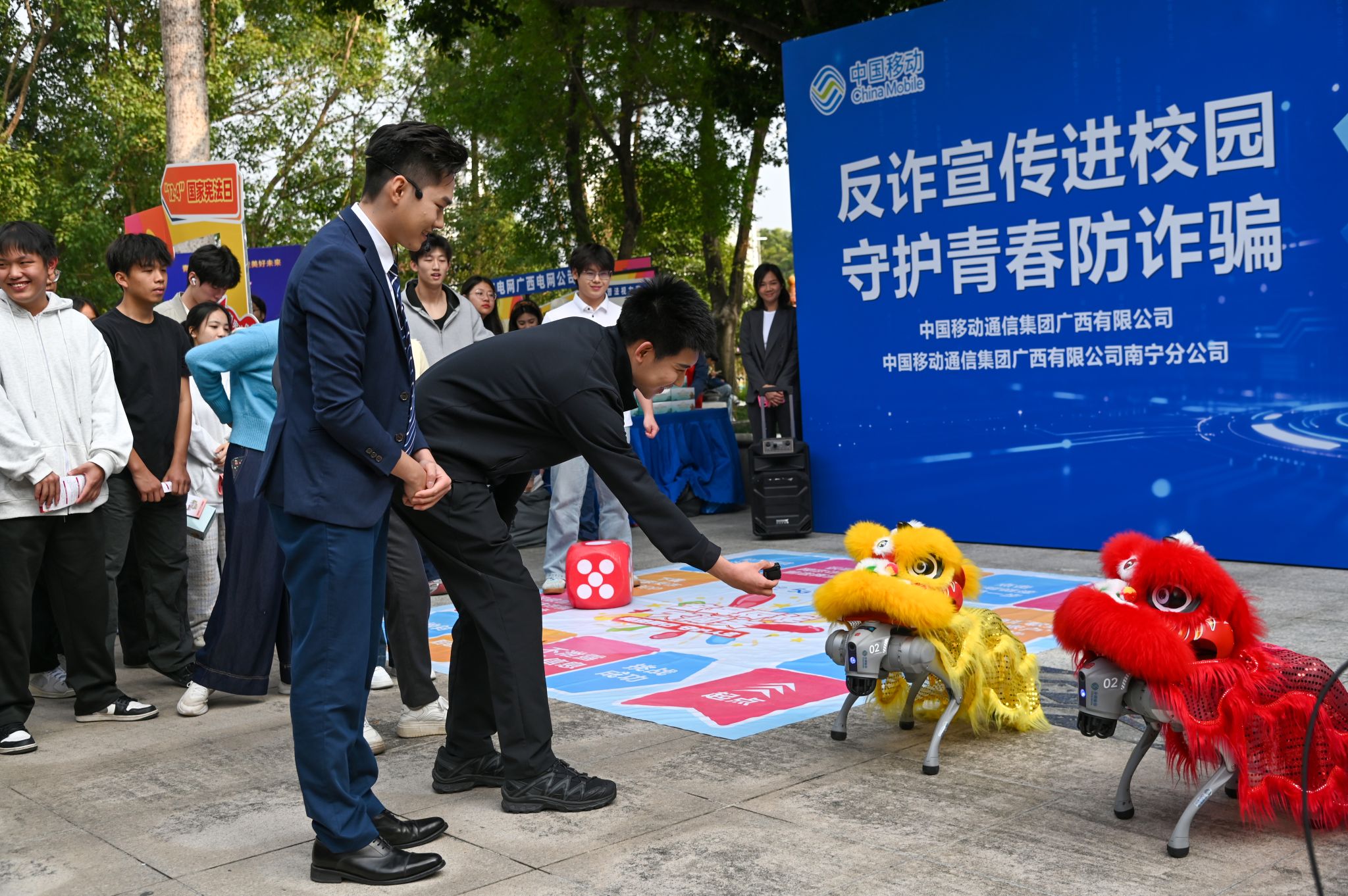 活动现场设有普法互动展示区和民族特色活动展区。法治书画展以艺术形式传递法治理念;中国-东盟法学院东盟人才培养与科研成果展和铸牢中华民族共同体意识实践成果展,通过图文系统呈现相关领域的工作成效。涉外法治分享沙龙吸引众多师生交流讨论,学者与观众共话法治,校园法治氛围愈发浓厚。