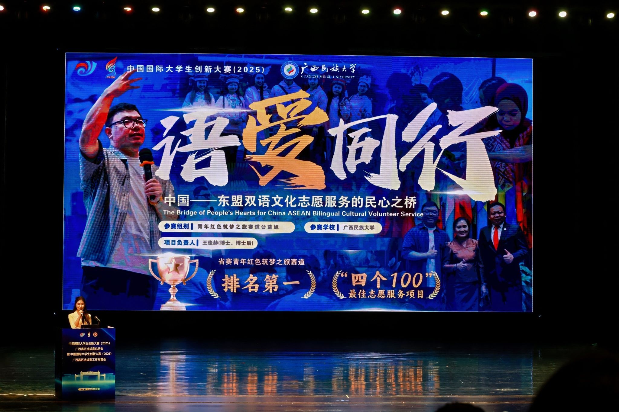 学校教务处处长、创新创业学院院长罗丽平作国赛金奖经验交流发言。学校国赛金奖项目《语爱同行》进行项目路演展示。(初审:罗丽平 编辑:韦丽娜 复审:韦利坤 终审:孙寿媚)