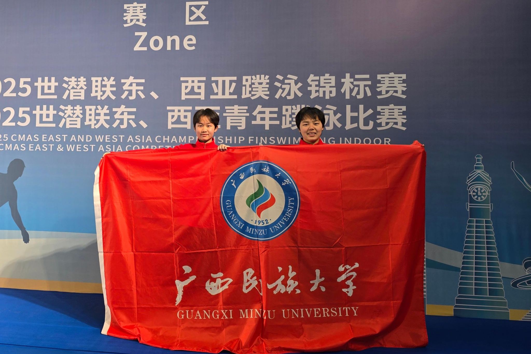 蹼泳是一项兼具速度、技巧与体能的水上运动,也是学校特色体育项目之一。学校始终坚持“体教融合”的育人路径,为优秀运动员提供系统的专业训练和学业发展支持,培养了一批竞技水平突出、综合素质优良的体育人才。姚华莉、谢盈盈的成功入选,既是对学校育人成果的充分肯定,也为广西高校体育事业发展注入新活力。