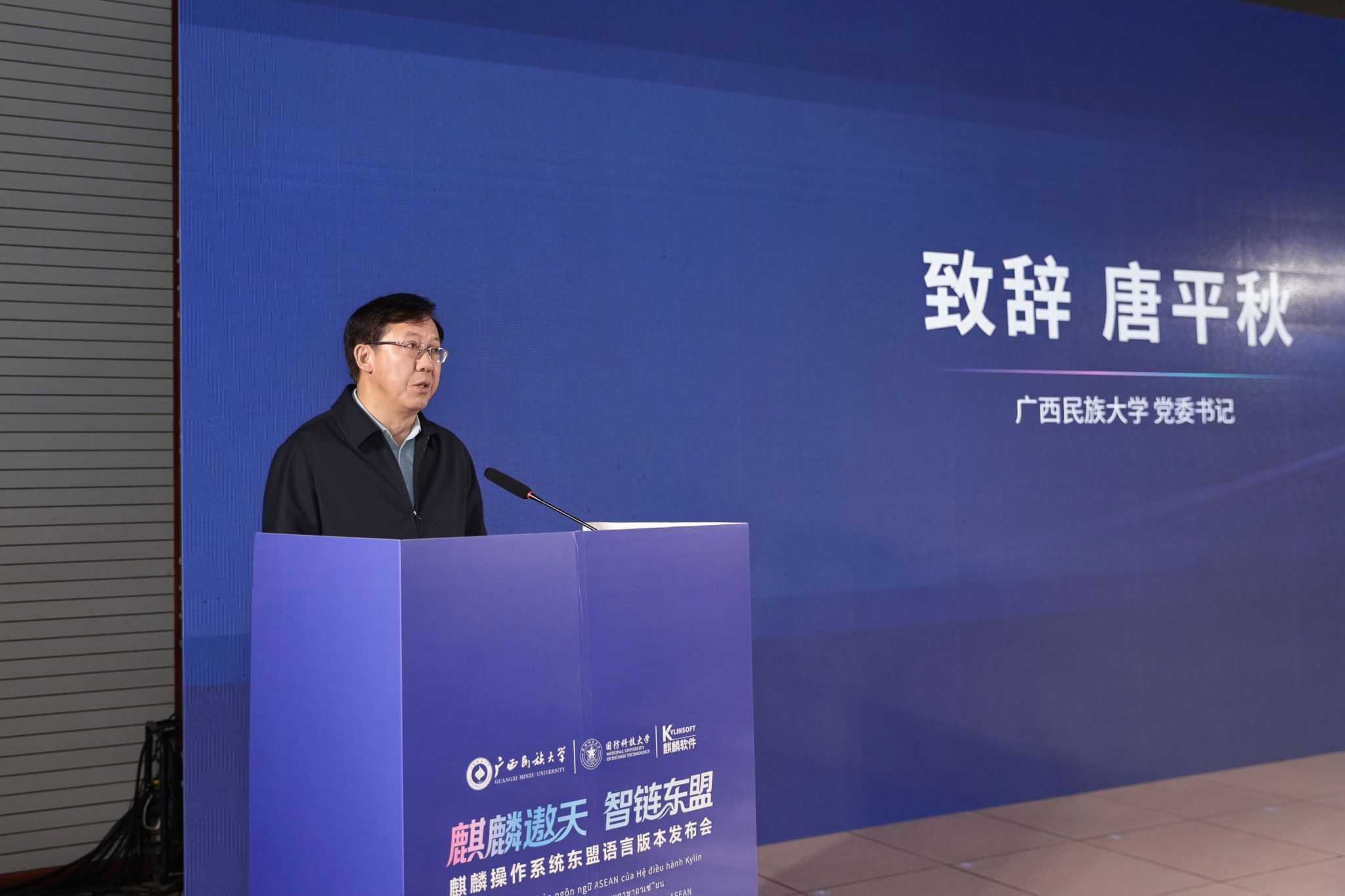 唐平秋对与会专家学者的到来表示欢迎,简要介绍了澳门网投官方网站在人工智能、东盟研究等领域取得的成果。他指出,此次与国防科技大学、麒麟软件联合研发的麒麟操作系统东盟语言版本发布,是学校响应国家“十五五”规划“人工智能+”战略的切实举措。该项产品成功落地,将为共建“数字丝绸之路”提供有力保障,希望以此次发布会为契机,立足广西核心枢纽与合作高地的独特优势,以科技创新为引,扎实推进区域经济社会高质量发展,携手构建更为紧密的中国-东盟命运共同体。