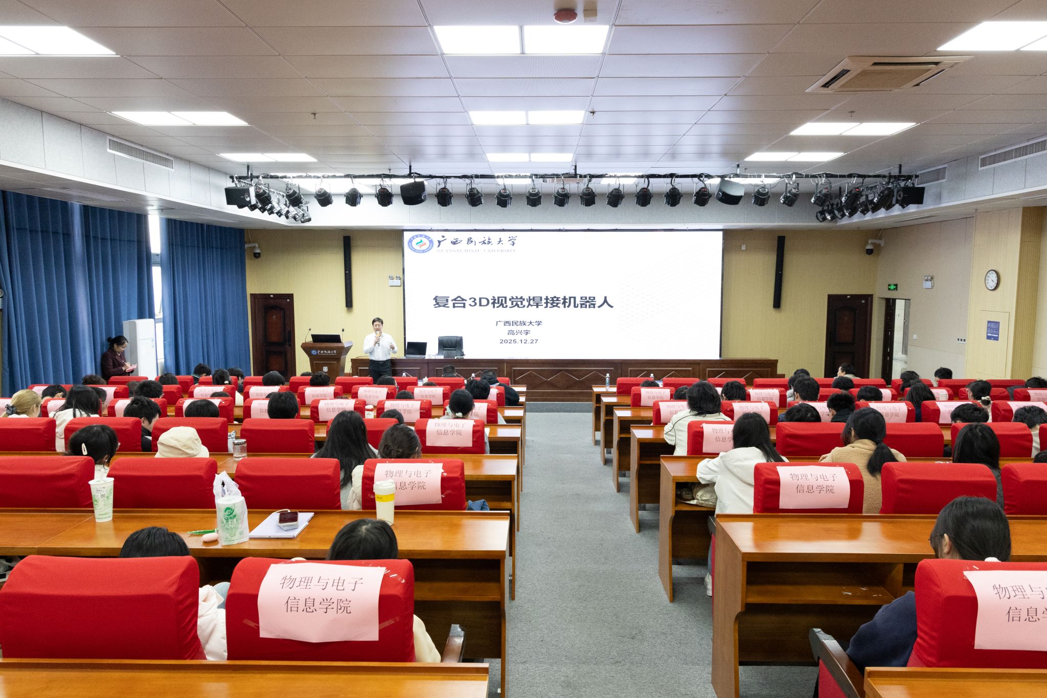 高兴宇教授以“复合3D视觉焊接机器人”为主题作报告,详细介绍重点实验室在3D视觉感知、焊接路径智能规划等方面的最新科研成果,并展望了实验室的发展愿景。他指出,未来实验室将进一步强化复合3D视觉焊接机器人在多领域融合、跨专业协作等方面的研究布局,深化跨学科协同创新,加速科研成果落地,更好服务区域智能装备产业发展与中国-东盟人工智能合作。