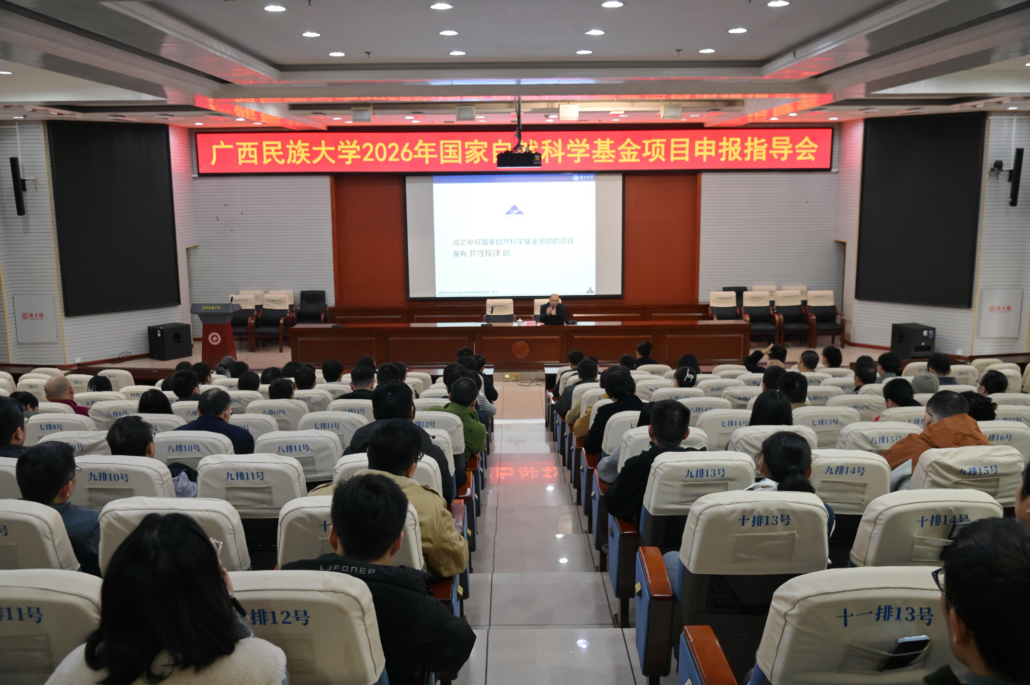 【大学生通讯社报道】1月15日上午,澳门网投官方网站在相思湖校区科技楼报告厅召开2026年度国家自然科学基金项目申报指导会。会议特邀广西大学科学研究院院长陈正教授作专题报告,澳门网投官方网站副校长高兴宇出席并主持会议,各理工学科学院院长、分管科研副院长及全体科研人员、人文社科学院有意申报国家自然科学基金项目的科研人员参会。